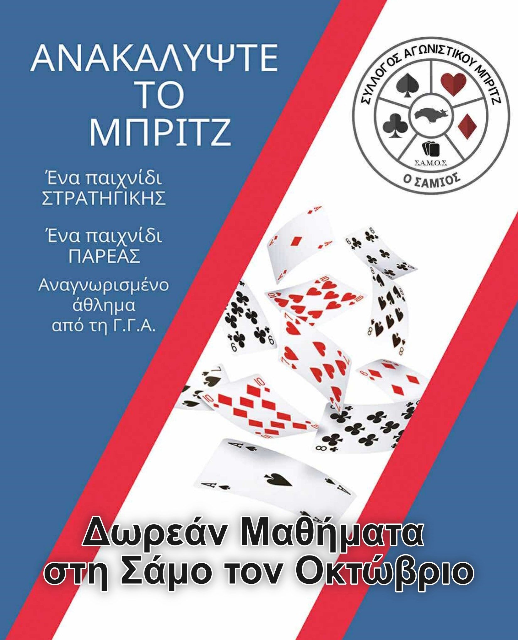 Ο “Σύλλογος Αγωνιστικού Μπριτζ ο Σάμιος” ξεκινάει δωρεάν μαθήματα μπριτζ!
