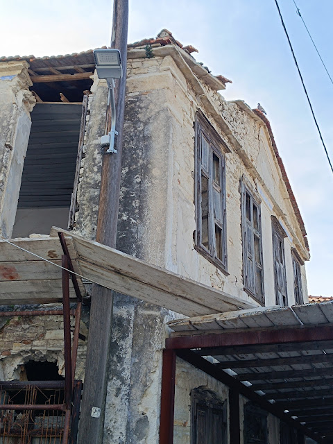 ■ Η ξύλινη προστατευτική κατασκευή με σιδερένια υποστυλώματα που έστησε η προηγούμενη δημοτική αρχή τέλος του 2022 (και αυτό μετά από συλλογή υπογραφών από τους κατοίκους και προσφυγή στον εισαγγελέα) για να προστατευτούν οι μαθητές από το ετοιμόρροπο που βρίσκεται στον δρόμο για το σχολείο τους, στην περιοχή Γαλάζιο της ενορίας της Παναγίας, ανησυχεί τους γονείς και όλους όσους οδεύονται από αυτόν. Το κτήριο αυτό πρέπει να κατεδαφιστεί.